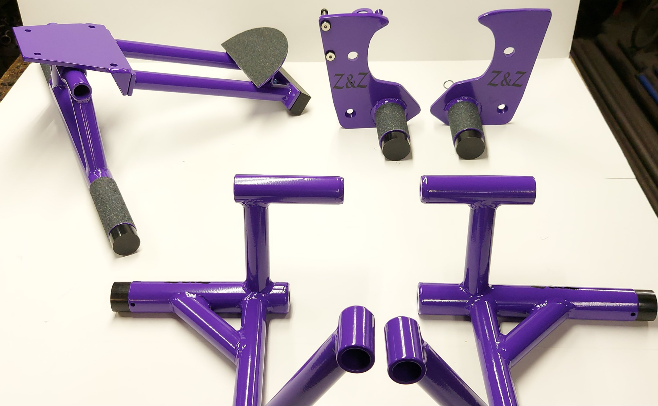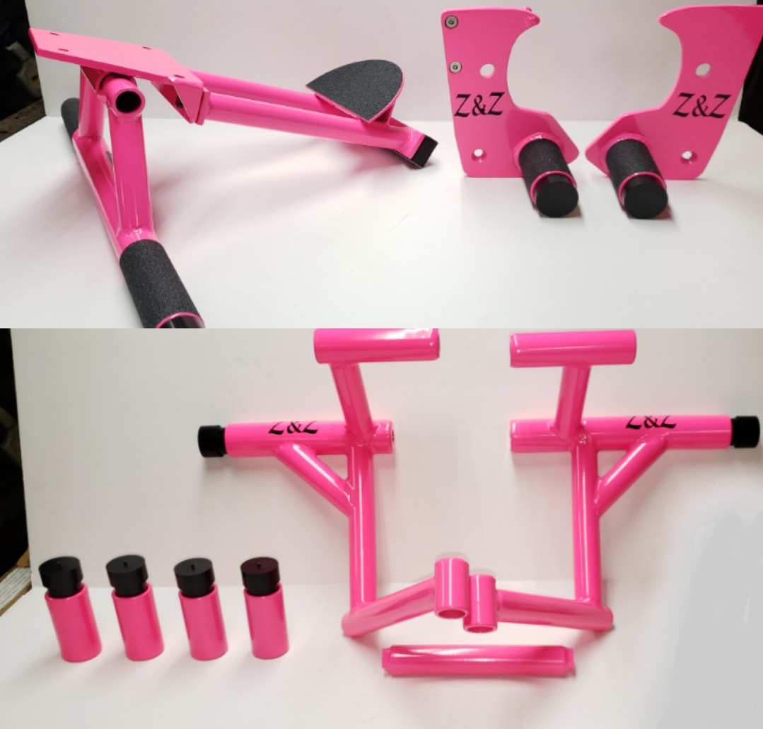 This combo is for Grom cage, original design has 2 contact points, it's 3 piece, has center crossbar connection, and comes with all mounting hardware"including some that replaces stock bolts" . Design has only 2 contact points and is more out of the way for taller riders or use of stunt tank. Cage doesn't work with looped headers. Then you get subcage with footrest and Delrin block scrape bar. Footrest comes griptaped. For sub on Sf models it requires simple relocation of tip sensor in front of battery tray. This pack comes steel rearsets with front pegs only, you choose options to customize your own set to your specs. At last you get front & rear axle sliders . All hardware included!