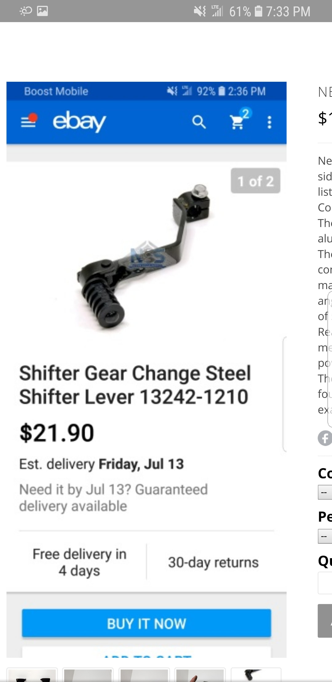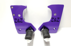Newest Rearsets I offer , and are the same steel plate as all my other designs. This listing is for both Complete sides and hardware to mount, and ride! The New Folding Adapters are CNC Milled out of solid 6061 aluminum, made extremely thick for tremendous strength. The adapters give you nice foot room to relax or stunt comfortable , also makes these mynstrongest Rearsets I make ! adapters can be adjusted to move pegs in different angles to customize to your own feet. Rearsets are made out of 5/16" thick steel. These to together make the perfect Rearsets with great strength compared to the stock pot metal (junk metals throw together). The rearset plates are powder coated and I'm open to new colors free of charge! These Rearsets require the Kx60 folding shifter . One can be found on Ebay for ruffly twenty dollars (refer to picture for exact purchase).