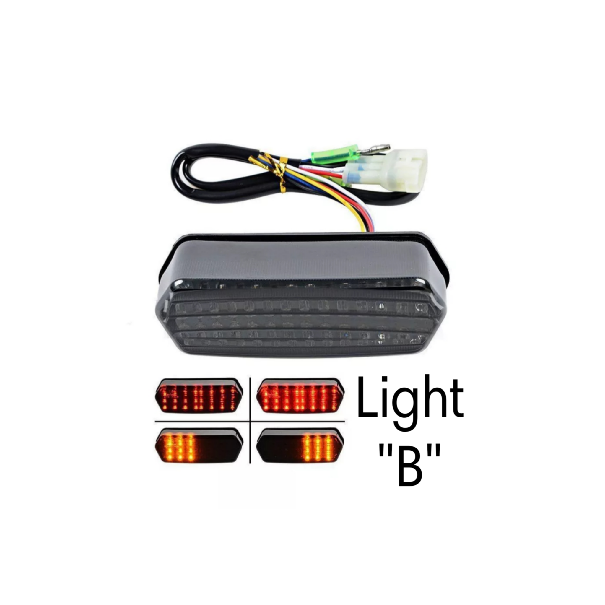Honda Grom l.e.d. tail lights come with plug and adapters to quickly plug and play , No splicing your wires in anyway ! Cool thing about "LIGHT-A" is has built-in Relay which for starters it makes the rear blinkers blink without having to buy a relay to make the change to rear led lights on your bike, "two" the right & left blinkers are made of 3 line arrows, which when signaling, it starts in the middle flashing yellow, then the next line flashes yellow, then to the third line, and starts back in the middle. Sickest tail light I've seen yet! "LIGHT-B" is just as great, way Darker/Tinted then "A" , but its blinker lights flash as one set. Compatible with all years . Will be adding multiple styles within next couple of days , which is only preference because all are equal !